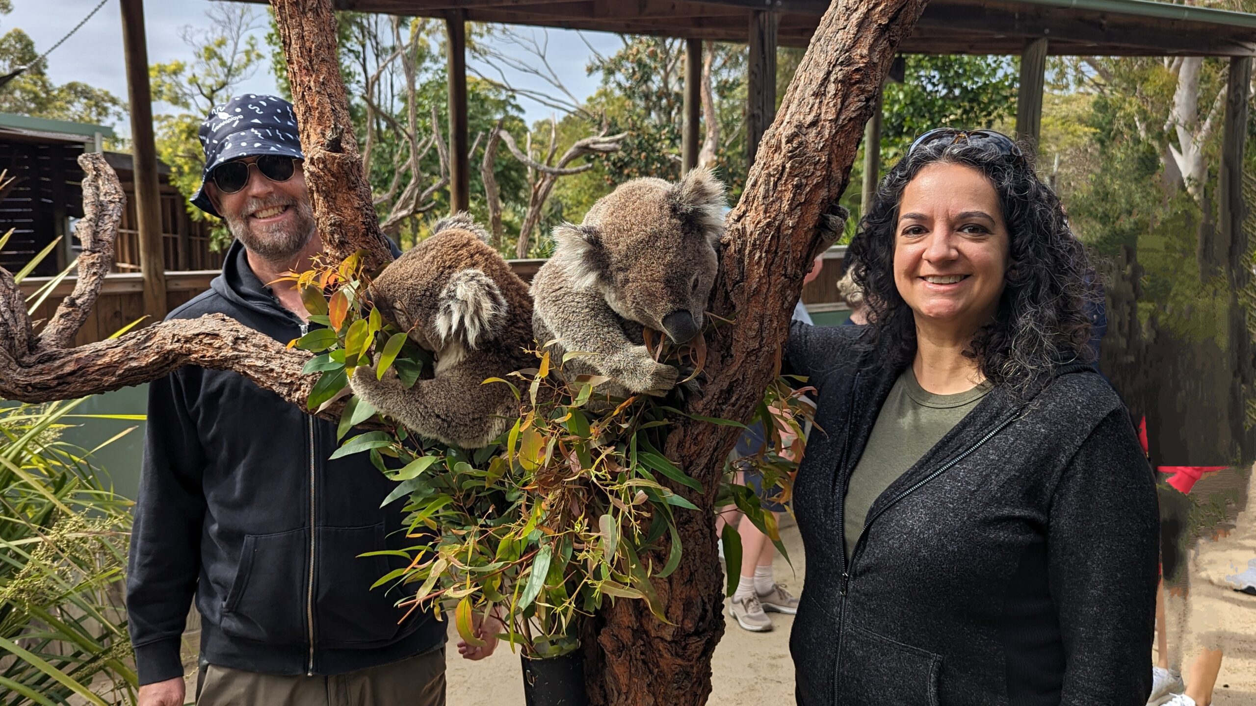 Our adventure began in Sydney, a city that immediately captivated me with its energy. The first two days were spent exploring the city on foot, taking in the iconic sights, from the bustling streets to the serene beauty of the Botanical Gardens. At the Botanical Garden I learned about the Jacaranda Tree, which to our amazement was in bloom all around Sydney and a few other places. These trees bloomed a beautiful purple, that just made you smile. A highlight was the Bridge Climb, offering a panoramic view of the city and its stunning harbor. Day three took us out of the city on a “Wildlife, Waterfalls, and Wine” day tour, a perfect way to experience the diverse natural beauty just outside Sydney’s urban core. The tour brought us up close with Koala, Kangaroo and Wallaby’s in addition to a short hike, and lunch on the beach. It was on this tour that our guide gave each of us a small treat, a Tim Tam…and well, we kept buying them, trying all the different flavors over the next few weeks. On the fourth day, we took a ferry to Manly Beach for a taste of Sydney’s famous coastal lifestyle and ended the day with a show at the iconic Opera House, a truly magical experience, even though we were in one of the smaller rooms.