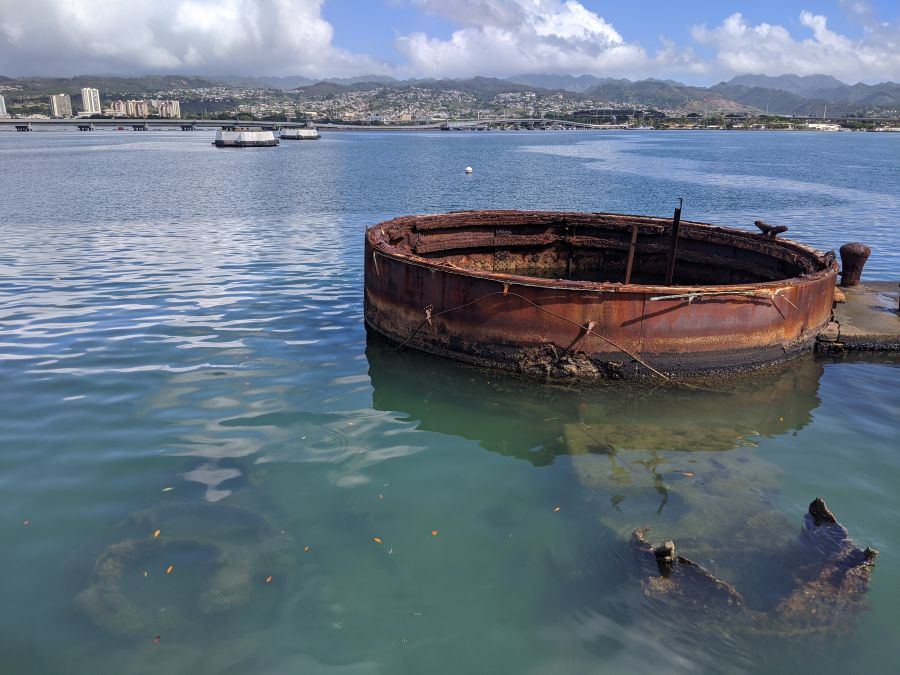 The highlight of visiting Pearl Harbor is undoubtedly the somber and poignant boat ride to the USS Arizona Memorial. Built directly over the sunken remains of the battleship, the memorial is a place of profound reverence. As our boat glided across the water, the visible outline of the Arizona beneath the surface served as a stark and powerful reminder of the devastation.
