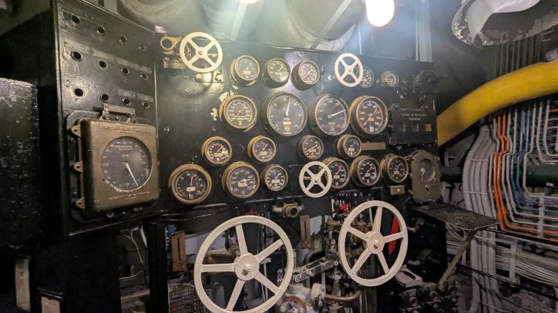 Next up was a visit to the USS Drum (SS-228), a World War II Gato-class submarine moored on the grounds. As expected, the tour through this vessel was a much quicker, yet equally intense, experience. Being the oldest American submarine on public display, the USS Drum is a National Historic Landmark in its own right, and was highly decorated, credited with sinking 15 enemy vessels and earning 12 battle stars.