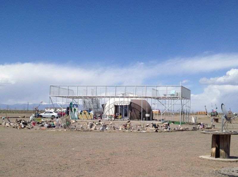 We spent time wandering the “vortex garden,” an endearing collection where visitors leave trinkets, toys, and offerings—everything from alien figurines to handwritten notes. The hodgepodge of items created an oddly touching folk art installation. We climbed the observation platform, taking in the vast, empty landscape that surrounded us in every direction.