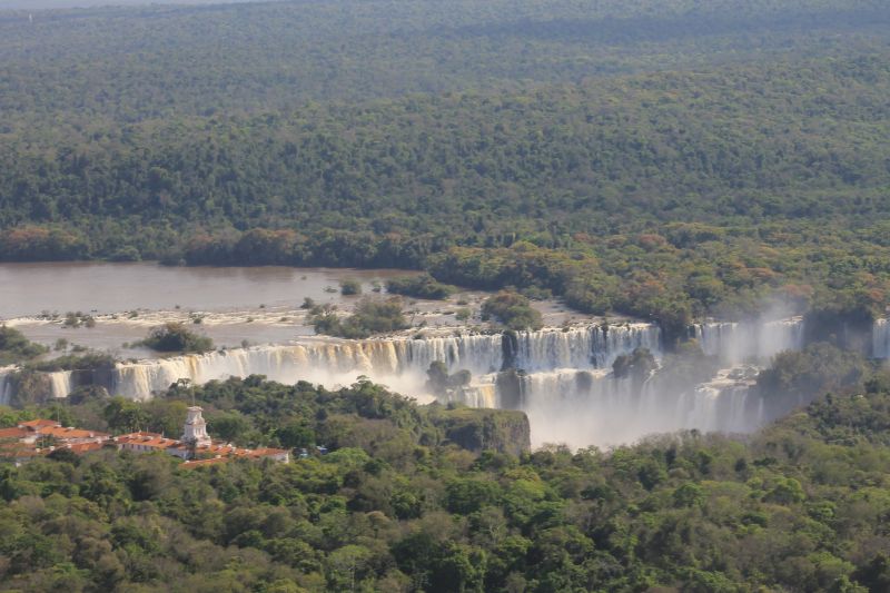 After we landed, we decided to take a helicopter tour. It was $113.01 for about 10 minutes, but worth every penny. From above, we saw the river, the falls, and the national park spread out below us like a living map. The Iguazu River snakes through the lush green rainforest before suddenly plummeting over the edge in what looks like hundreds of white ribbons cascading into the misty abyss below. The most impressive section, known as the “Devil’s Throat” (Garganta del Diablo), forms a U-shaped chasm where 14 falls combine to create the most powerful section of the entire system. It was a great thing to see before actually experiencing them at ground level—it made the experience even more majestic and helped us understand the sheer scale of what we were about to explore.