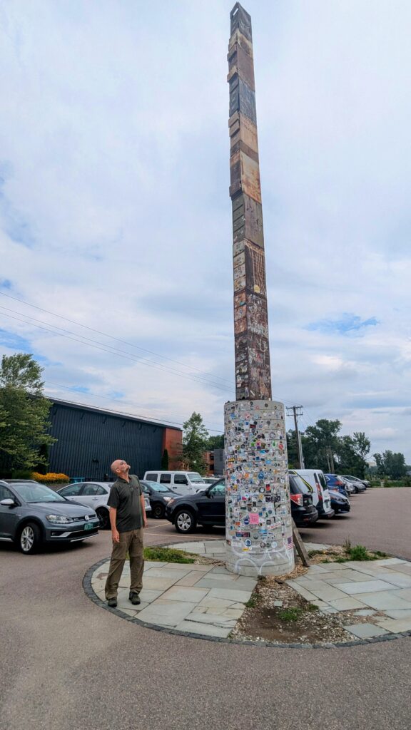 Our first stop was purely for the photo-op: the so-called “World’s Tallest Filing Cabinet.” We drove right by it, twice. It is located in a parking lot on the corner of Champlain Parkway and Flynn Avenue. This towering metal stack is officially titled “File Under So. Co., Waiting for…” and is truly an icon of bureaucratic frustration turned into art.